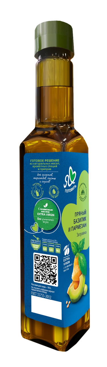 Заправка обладает нежным вкусом пряного базилика и итальянского сыра пармезан. Идеально подходит к блюдам из мяса, рыбы, морепродуктов и овощей. Это натуральный готовый продукт из смеси подсолнечного и оливкового масел Extra Virgin, богатый Омега-9, с добавлением ароматных специй и приправ. Заправка обладает нежным вкусом пряного базилика и итальянского сыра пармезан. Идеально подходит к блюдам из мяса, рыбы, морепродуктов и овощей.