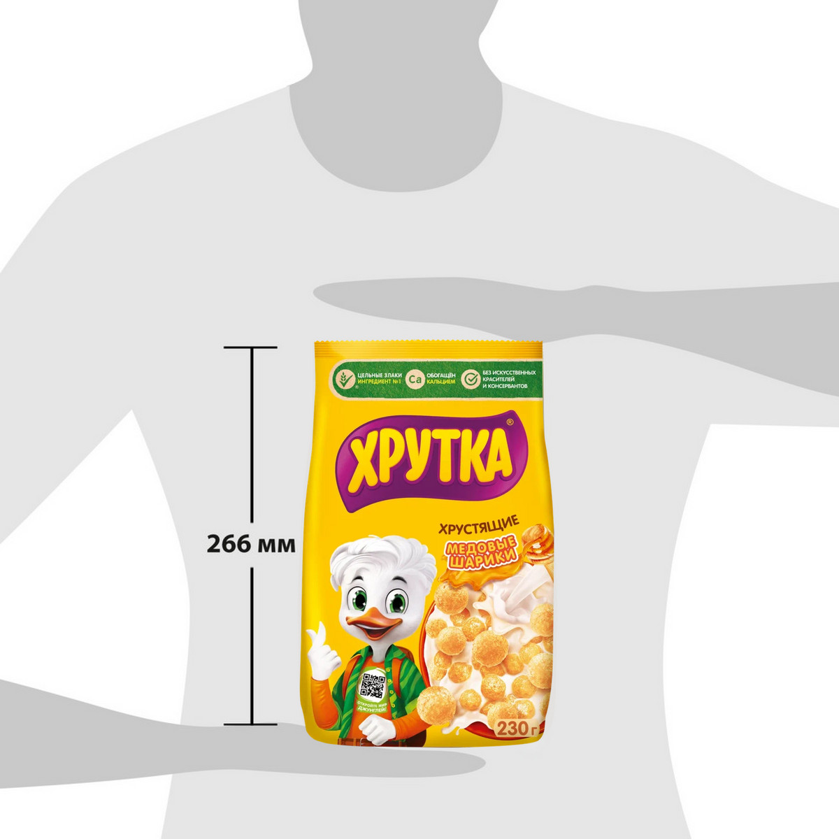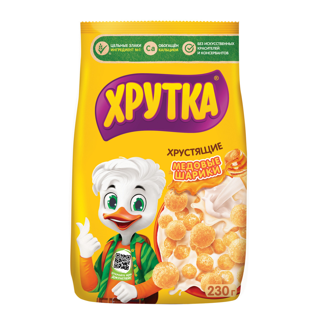 Завтрак готовый Хрутка медовые шарики, 230г это именно то, что вам нужно! Добавьте молоко, йогурт, кефир или сок – и ваше утро начнется со вкусного разнообразного завтрака для всех и каждого! В состав готового завтрака Хрутка Медовые хлопья входят цельные злаки, которые помогают обеспечить организм важными питательными веществами – сложными углеводами, белками и минеральными веществами. Внешняя оболочка цельных злаков (отруби) содержит пищевые волокна, которые способствуют нормальному пищеварению.