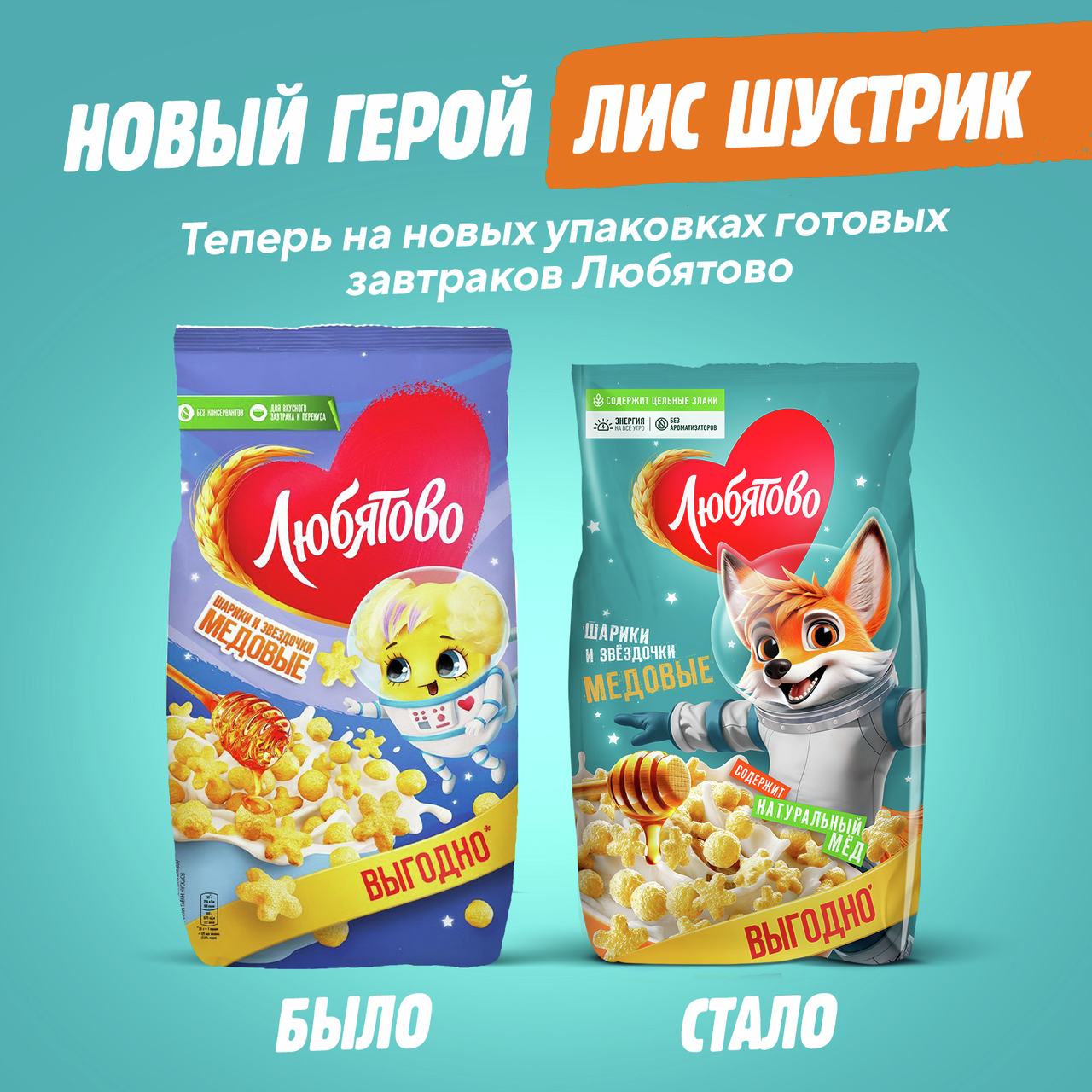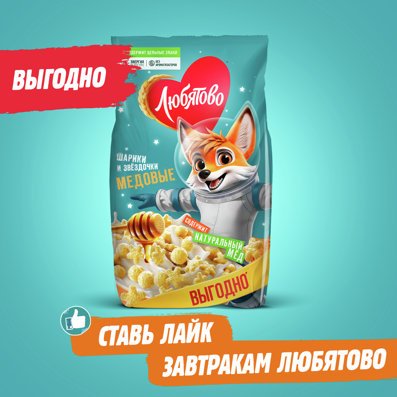 Готовый завтрак Любятово Медовые шарики и звездочки, 420г