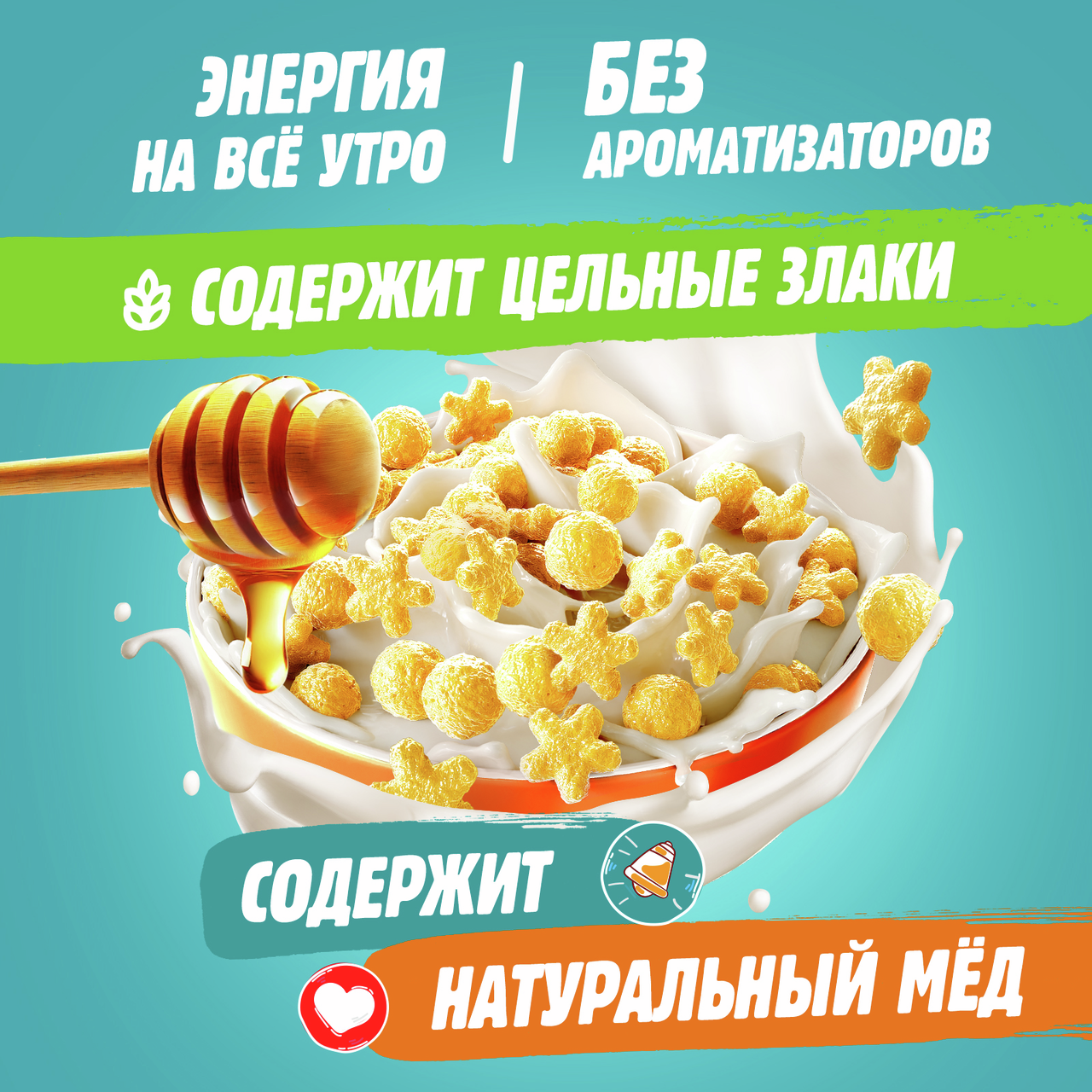 Вкусный микс из мультизерновых шариков и звездочек с натуральным мёдом — отличная альтернатива привычным хлопьям и шоколадным шарикам. Их можно добавить в молоко, кефир или йогурт, украсить их фруктами и вареньем — и у вас получится совершенно новое блюдо!