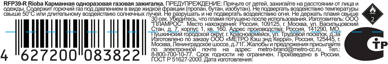 RIOBA Зажигалка Пьезо черная 39-R
