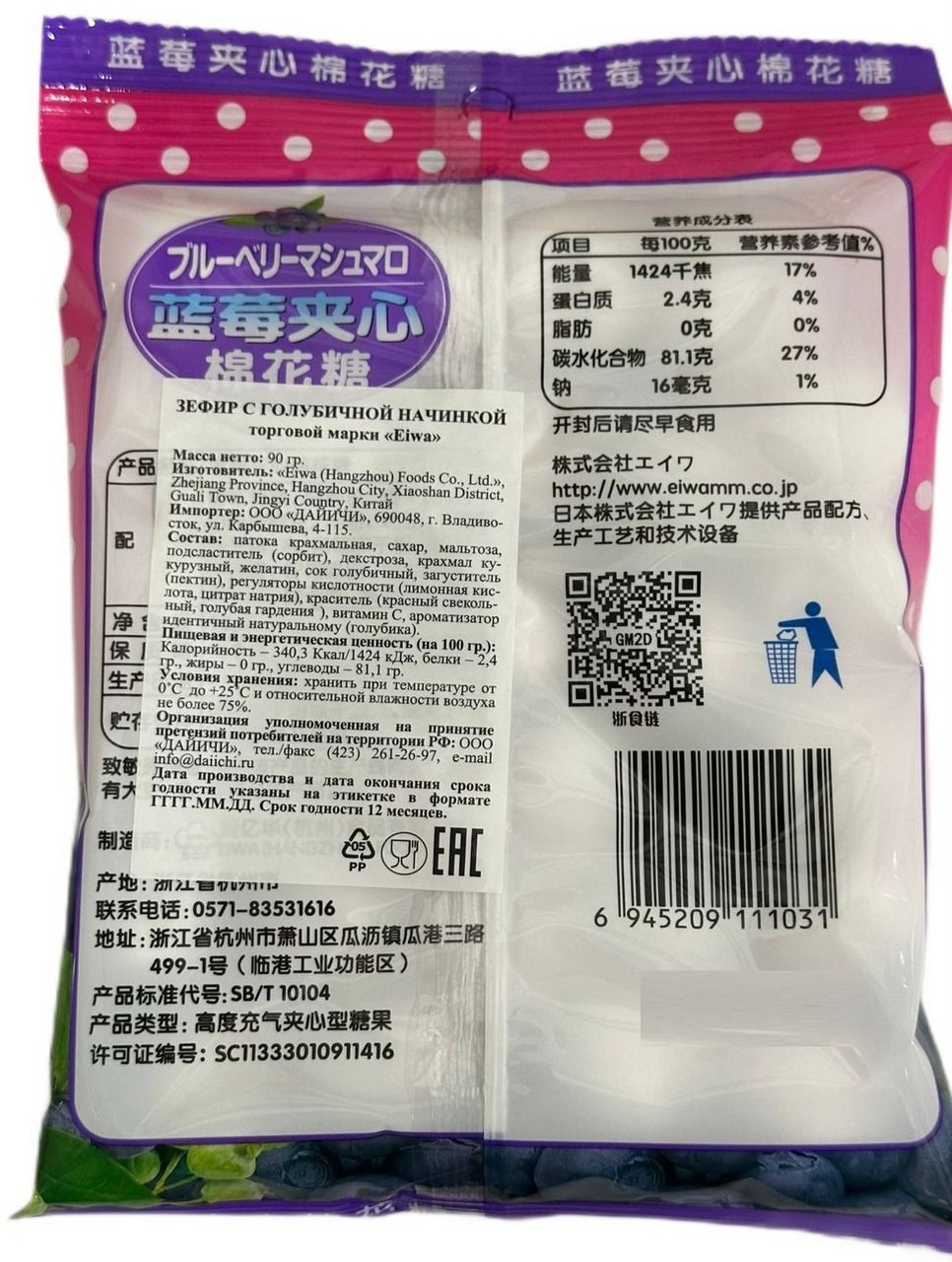 Зефир Eiwa начинка из голубики, 90г
