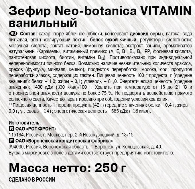 Зефир Neo Botanica Vitamin Ваниль, 250г