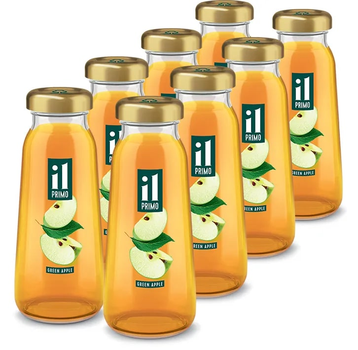 Сок IL Primo создан из лучших сортов российских яблок — курский золотой ренет и северный синап. Сочетание соков, выжатых из этих хрустящих, спелых плодов зеленого цвета дарит нам неповторимый освежающий вкус с чуть пряными нотами. Продукт произведен из концентрированного сока, без ГМО и сахара. Восстановленный и осветленный, он очень вкусен охлажденным, со льдом, также может быть использован в составе коктейлей, а стеклянные герметичные бутылочки позволяют сохранять его свежесть до года.