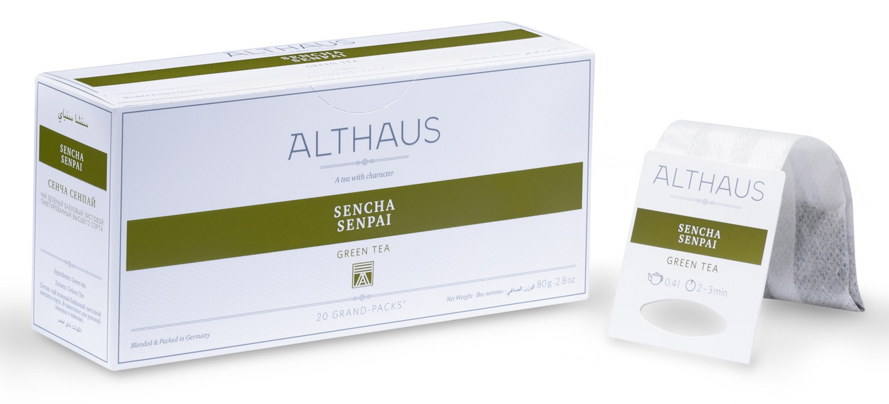 Зелёный чай Althaus "Sencha Senpai" (Сенча Сенпай) — классический японский зелёный чай из отборных листьев. Это самый популярный чай в Японии. Его получают из раннего майского сбора или листьев второго июльского урожая.
