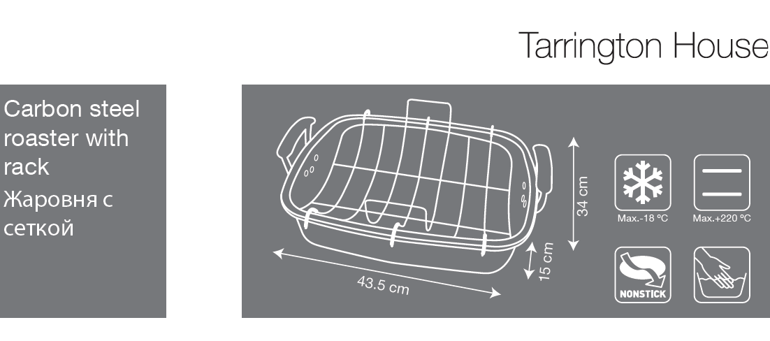 Жаровня прямоугольной формой выполнена из высококачественной углеродистой стали с антипригарным покрытием. Оборудована съемной сеткой для удобства использования и легкой очистки. Идеальна для приготовления вкусных блюд.Лаконичная жаровня для запекания в печи и духовке. Используйте решётку, если собираетесь запекать утку, цыплёнка или окорок. Сок и жир, вытапливающиеся из мяса будут стекать вниз, а само мясо будет равномерно покрываться хрустящей корочкой. Жаровню удобно доставать из духовки за бортики по краям (не забудьте прихватки!). Безопасное антипригарное покрытие не даст пище прижариться к посуде. При работе лучше всего использовать деревянные или силиконовые приборы, чтобы не повредить покрытие. Можно мыть в посудомоечной машине, но чтобы продлить срок службы покрытия, рекомендуем мыть вручную тёплой водой и щадящими средствами для мытья посуды.