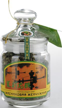Чай зеленый Жасминовая жемчужина, 100 г. Этот чай является одним из самых известных разновидностей чая в Китае. Его выращивают на чайных плантациях, расположенных на высоте более чем 2000 метров над уровнем моря, чтобы свободный от загрязнения воздух благотворно воздействовал на него. Состав: чай зеленый китайский байховый крупнолистовой, ароматизированный натуральными цветками жасмина. Способ приготовления: 14 г чая (2 чайные ложки) залить кипятком и размешать. Заваривать 5-7 минут. Хранить в чистом, хорошо вентилируемом помещении без посторонних запахов при температуре не выше +25С и ��тносительной влажности воздуха не более 75%. Срок годности: 24 месяца.