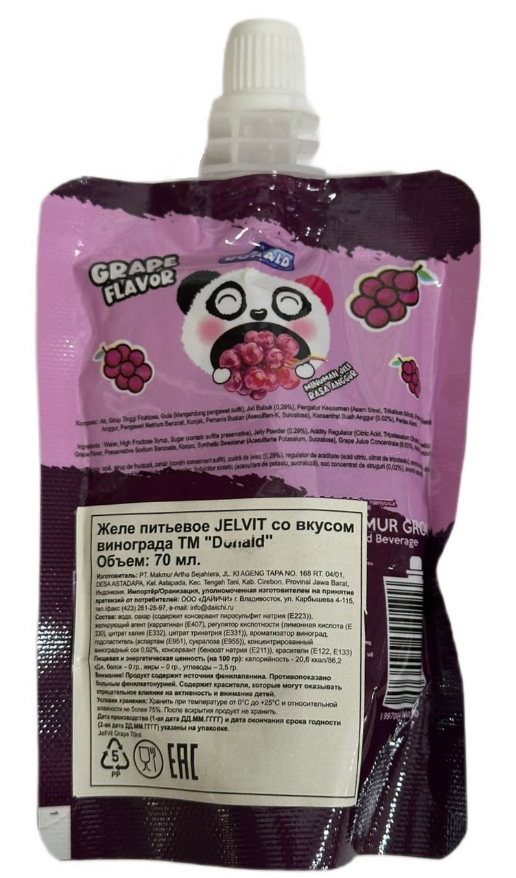 Это желе имеет кисло-сладкий виноградный вкус. Желе дарит ощущение сытости и приятный вкус фруктов. Упаковка отлично подходит для переноски, поместится даже в небольшую сумку или рюкзак, идеальный перекус между приёмами пищи вне дома.