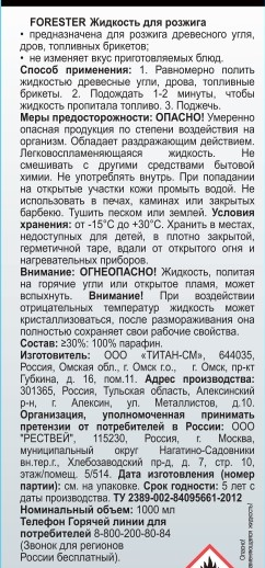 Жидкость для розжига Forester с распылителем, 1л
