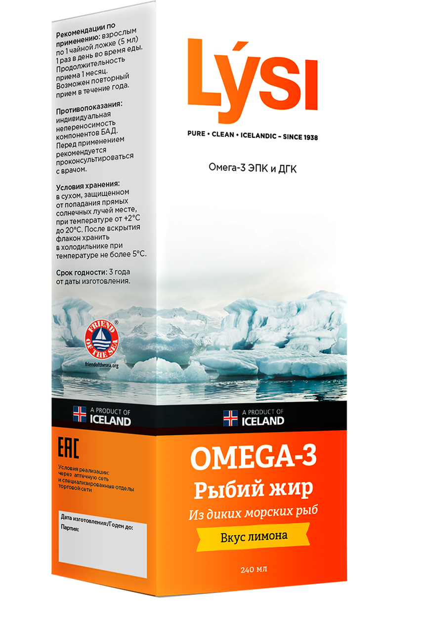 Жир рыбий Lysi Омега-3 со вкусом лимона, 240мл