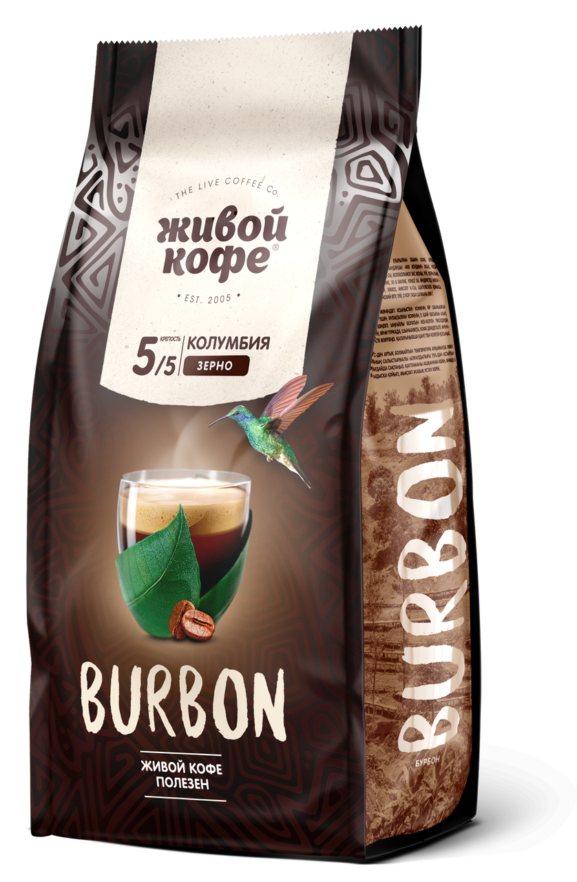 Живой Кофе Burbon включает в себя лучшие и редкие сорта колумбийского кофе сорта арабика. Почти весь кофе Колумбии собирается в ручную. С целью уберечь нежнейшие кофейные деревья от палящих лучей Латиноамериканского солнца колумбийские фермеры высаживают их под более высокими деревьями коки. Период цветения кофе и коки совпадают. Считается, что они не опыляет друг друга, однако любители кофе признаются в том, что уже с первым глотком Burbona ощущают восхитительную энергетику. Кофе Burbon обладает сбалансированным вкусом и стойким ароматом.