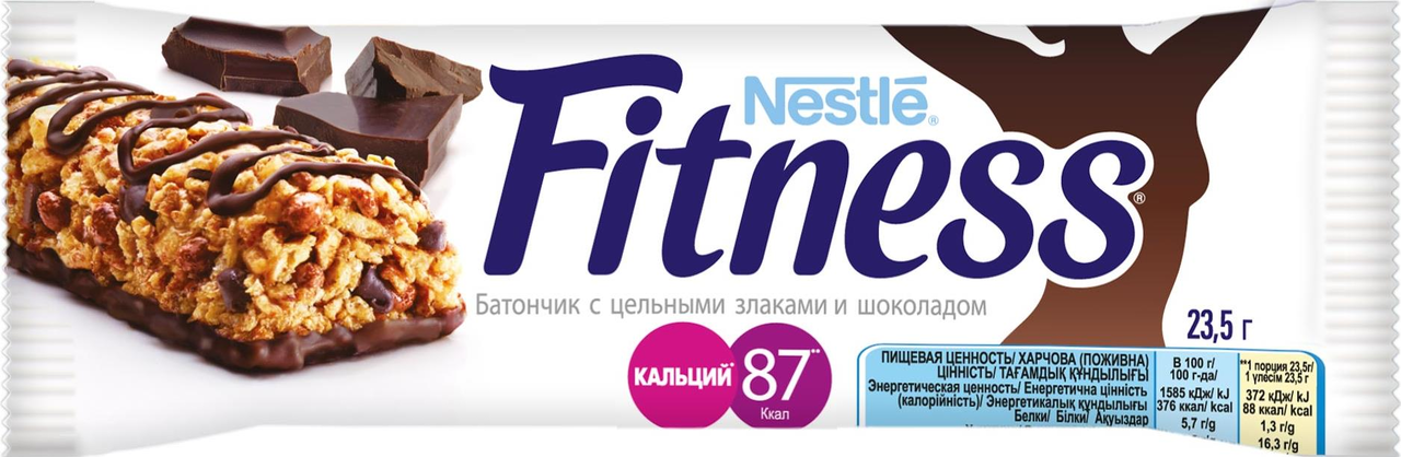 Батончик Fitness содержит много клетчатки и мало жира. Клетчатка в цельных злаках регулирует пищеварение, способствуя поддержанию оптимального веса тела.
