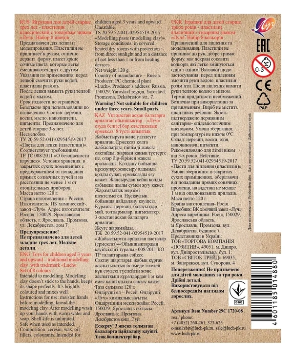 Пластилин "Zoo" - это традиционный классический пластилин. Изготовлен на основе природных восков, находится в картонной коробке. Товары серии "Zoo" сочетают высокое качество продукта с доступной ценой. 8 цветов: белый, желтый, красный, зеленый светлый, синий, черный, фиолетовый, розовый.