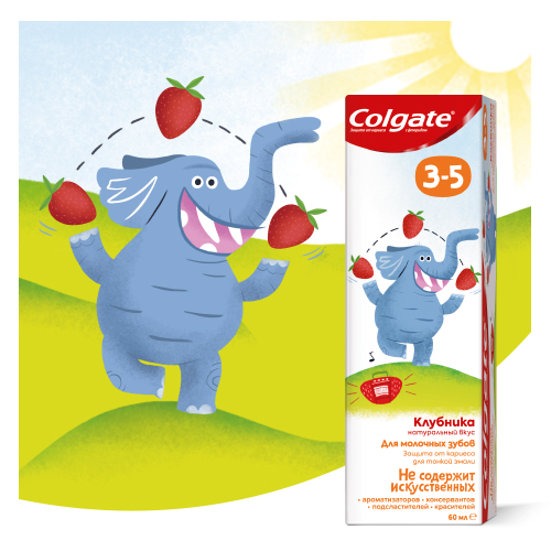 Детская зубная паста от любимого бренда Colgate со вкусом клубники 3 — 5 предназначена для ухода за молочными зубами малышей для девочек и для мальчиков. - Подходит для детей от 3 лет, 4 лет и 5 лет - Не содержит SLES (Sodium Lauryl Sulfate лауретсульфат натрия), глютена, сахара, парабенов, подходит для веганов - Не содержит агрессивных абразивных частиц - 100% натуральный вкус - Соответствующее возрасту содержание фторида - Не содерж��т искусственных ароматизаторов, подсластителей, консервантов, красителей - подходит как для девочек, так и для мальчиков - Внутри каждой пачки небольшой сюрприз для родителей и ребенка Любимый вкус клубники придется по вкусу вашему малышу и поможет мотивировать ребенка к регулярной гигиене полости рта. Первичной упаковкой продукта является картонная упаковка. Целостность первичной упаковки обеспечивается запаиванием картонной упаковки в момент производства.