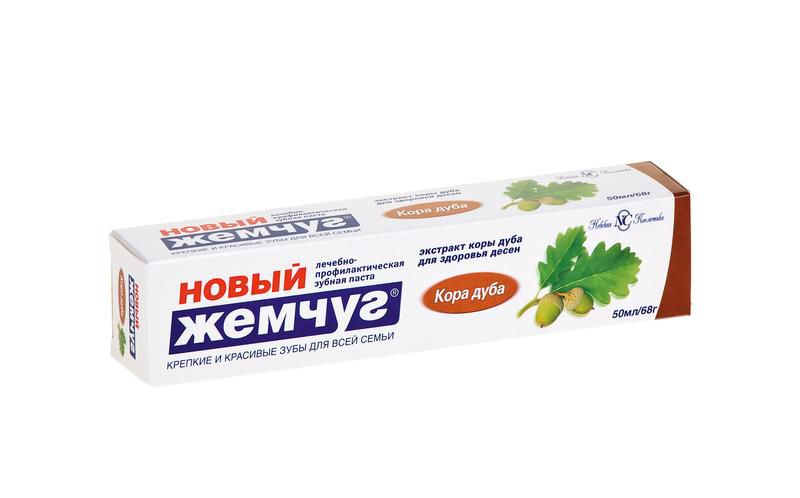 Новый Жемчуг Кора дуба — лечебно-профилактическая зубная паста для всей семьи, включая детей с 7 лет. Способствует профилактике заболевания кариесом, эффективно очищает от зубного налёта. Благодаря экстракту коры дуба, богатому органическими кислотами и дубильными веществами, паста помогает сохранить десны здоровыми, укрепляет их, снижает кровоточивость.Фтор защищает от кариеса, увеличивает сопротивляемость воздействию кислот, вредных для эмали зубов. Экстракт коры дуба оказывает вяжущее и противовоспалительное действия при гингивитах и стоматитах. Мятный вкус и аромат пасты придает ощущение свежести и чистоты полости рта.
