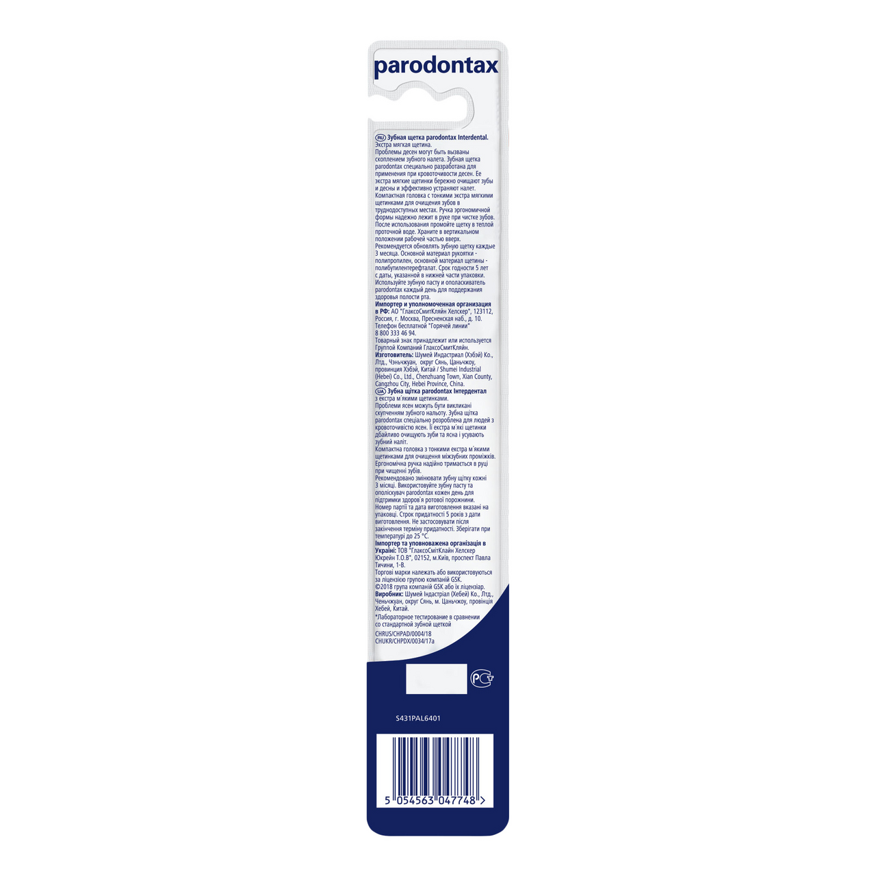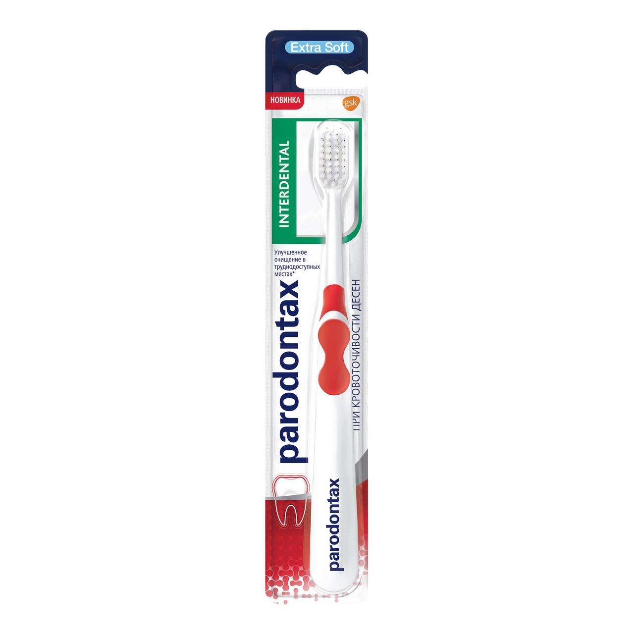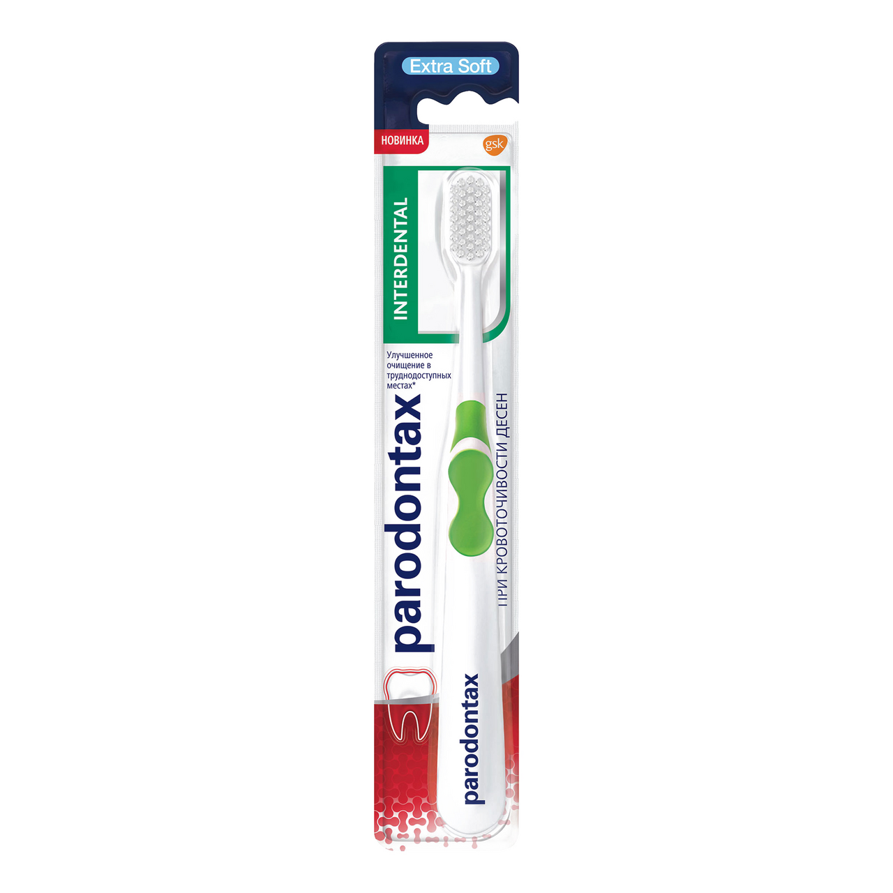 Parodontax - бренд No1 по рекомендации* стоматологов при кровоточивости десен. Основные преимущества зубной щетки Пародонтакс Interdental:- Экстра мягкая щетина- Тонкие кончики щетинок белого цвета позволяют проникнуть зубной щетке в труднодоступные места для эффективного очищения- Компактная головка для лучшего очищения в труднодоступных местах- Количество щетинок: 3672- Материал щетинок: ПБТ- Диаметр щетинок: 0.127 мм* Изучение рекомендаций стоматологами различных марок в сегменте по уходу за полостью рта, Институт маркетинговых исследований ГФК-Русь, ноябрь 2017 – январь 2018 г.