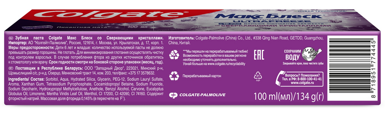 Зубная паста Colgate Максимальный блеск со сверкающими кристаллами, 100мл