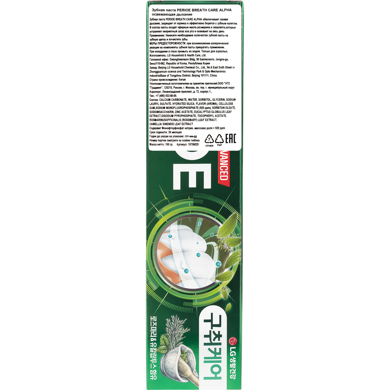 Зубная паста Perioe Breath Care Alpha обеспечивает свежее дыхание, защищает от кариеса и эффективно борется с зубным налетом. В состав пасты входят эфирные масла розмарина и эвкалипта, которые устраняют неприятный запах изо рта и освежают на весь день.