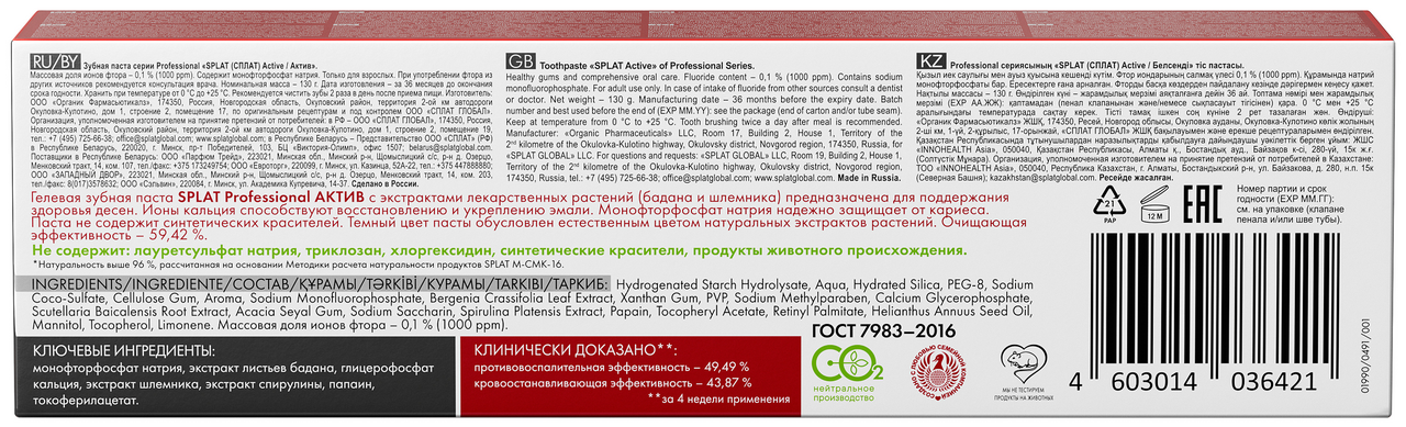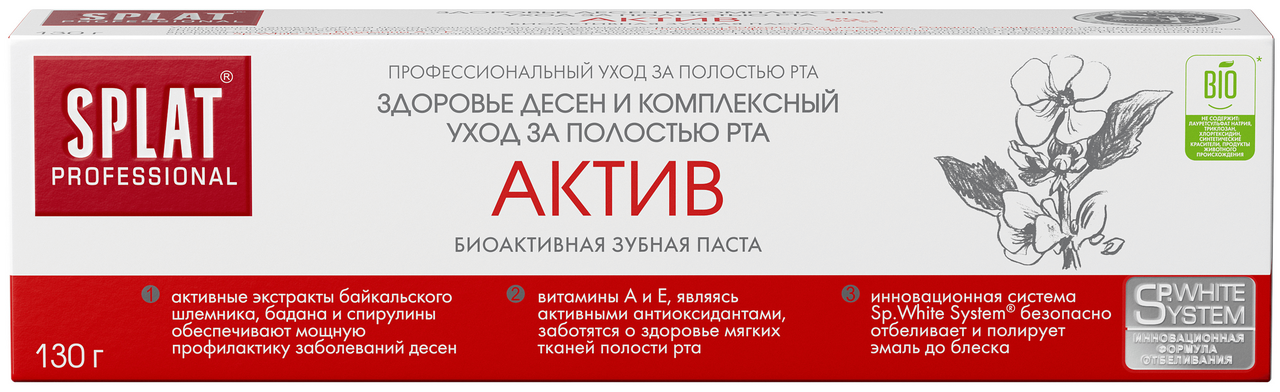 Зубная паста Splat Актив для здоровья десен и комплексного ухода за полостью рта, 130г