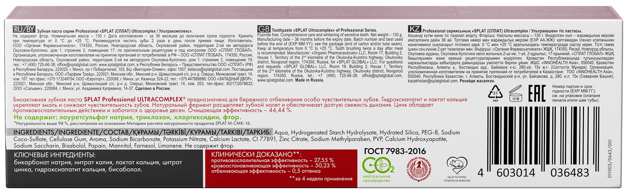Зубная паста Splat Ультракомплекс для комплексного ухода и отбеливания чувствительных зубов, 130г