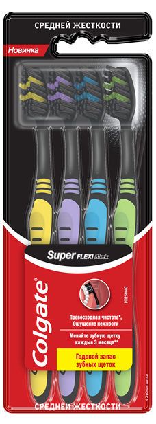 Зубная щетка Colgate Super Flexi Black с гибкой ручкой средней жесткости, 4шт