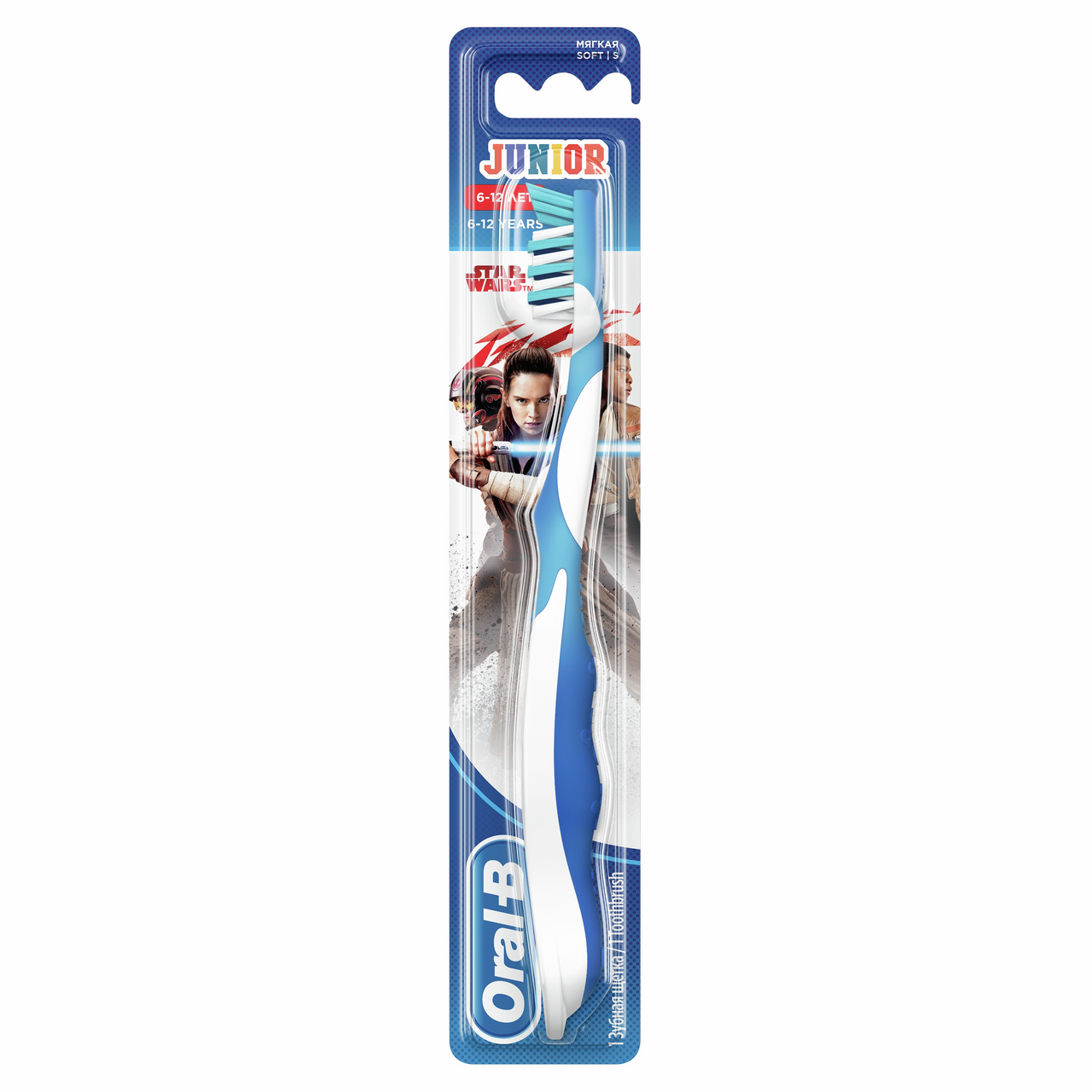 Детская зубная щетка "Oral-B Junior" с персонажами Звездных войн для качественной чистки зубов у детей от 6 до 12 лет.Разработана для детей старшего возраста, у которых есть как молочные, так и коренные зубыЩетинки с закругленными кончиками не травмируют мягкие ткани полости ртаПересекающиеся щетинки CrissCross эффективно устраняют зубной налетУдобная нескользящая ручкаOral-B - марка зубных щеток No1, рекомендуемая большинством стоматологов мира.* * по данным исследования, проведенного в 2011-2018 году агентством Attitude Measurement Corporation среди репрезентативной выборки стоматологов.