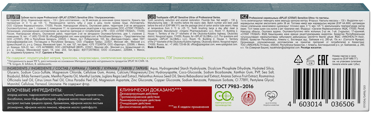 Зубная паста Splat Sensitive Ultra для снижения чувствительности зубов и восстановления эмали, 130г