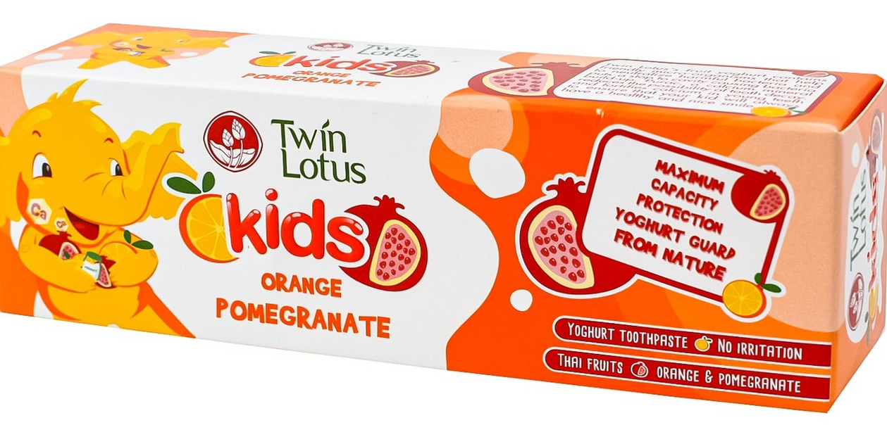 Зубная паста детская Twin Lotus Kids Апельсин-гранат от 3 до 10 лет, 50г
