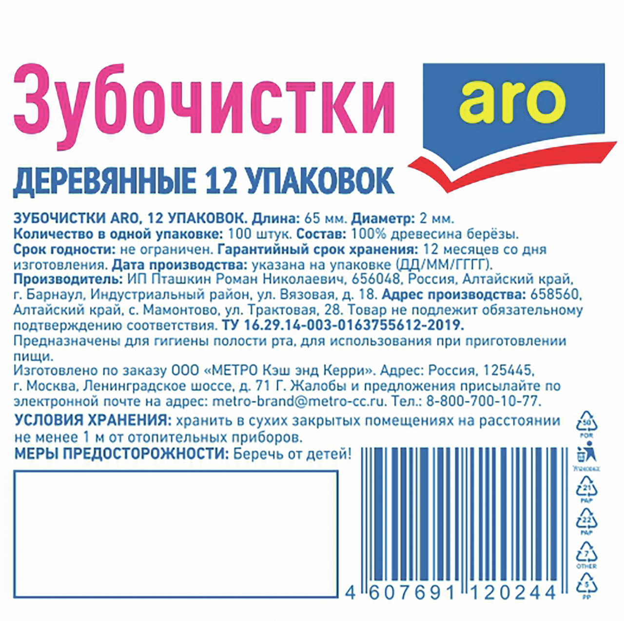 aro Зубочистки, 12шт