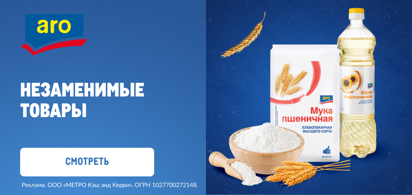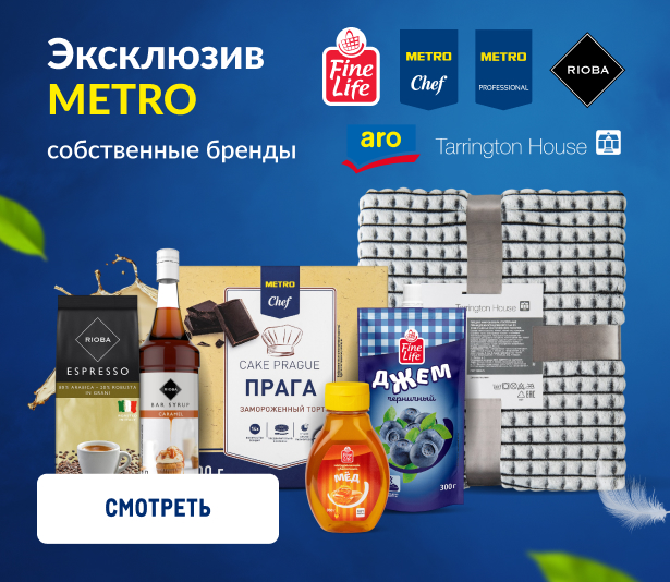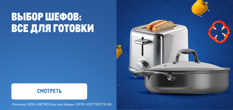 Реклама. ООО «МЕТРО Кэш энд Керри», ОГРН 1027700272148. В течение дня цены и наличие товаров может изменяться, уточняйте информацию в вашем торговом центре. Цены указаны с НДС, с учетом скидок. ООО «МЕТРО Кэш энд Керри» вправе изменить цену товара без предварительного уведомления. METRO-единица (МЕ) – минимальная доступная к продаже упаковка товара в ТЦ METRO. Изображение товаров на сайте может отличаться от фактического изображения. Возрастные ограничения указаны на упаковке товара. ООО «МЕТРО Кэш энд Керри» вправе досрочно изменить условия или завершить проведение акции по своему усмотрению. Торговые центры могут временно ограничивать по своему усмотрению реализацию товаров с повышенным спросом в рамках одного заказа для некоторых товаров с целью поддержания товарного запаса. Действует ограничение по максимальной сумме стоимости товаров, доступных в одном заказе пользователя для 1 артикула в течение 1 дня: для продуктов питания на сумму, не превышающую 50 000 рублей; косметических средств и бытовой химии – на сумму, не превышающую 100 000 рублей. Продажу товаров с доставкой \ Доставку и прием платежей при заказе на сайте metro-cc.ru осуществляет ООО “Инстамарт Сервис“, юридический адрес: Россия, 142111, г. Москва, вн.тер.г. муниципальный округ Щербинка, г. Щербинка, ул. Кутузова, д. 12. ОГРН 1187746494980 от 22.05.2018 г